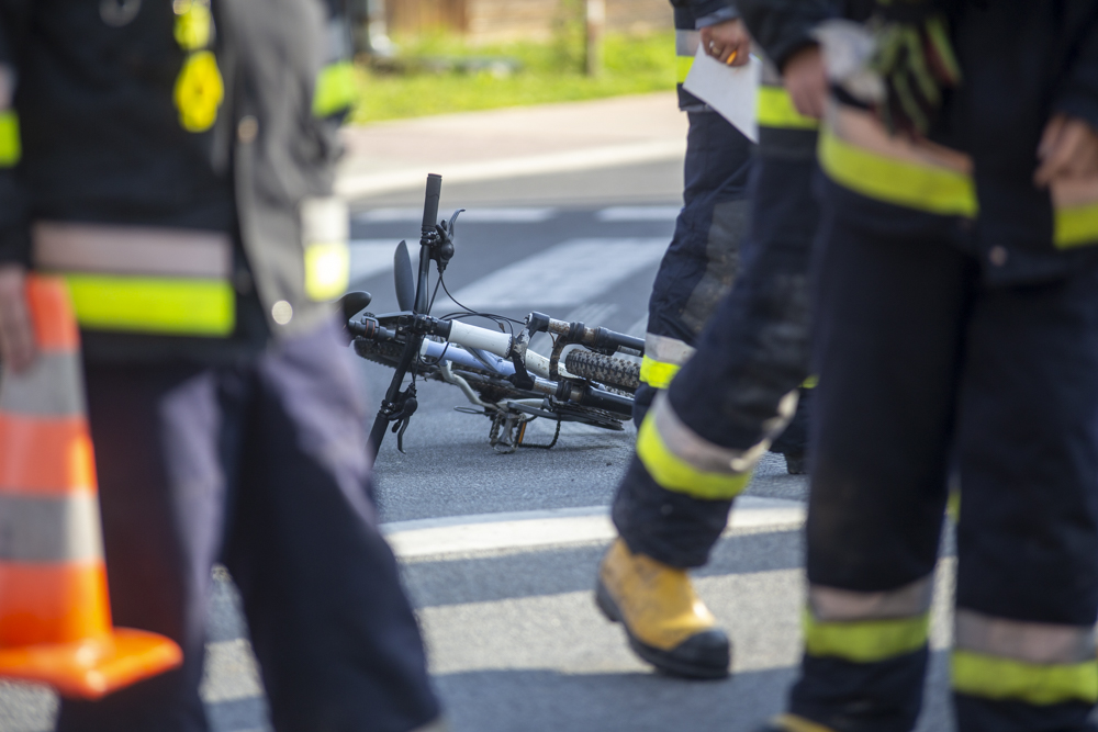 Kierowca samochodu osobowego marki Renault podczas skrętu w lewo potrącił jadącą z naprzeciwka rowerzystkę.