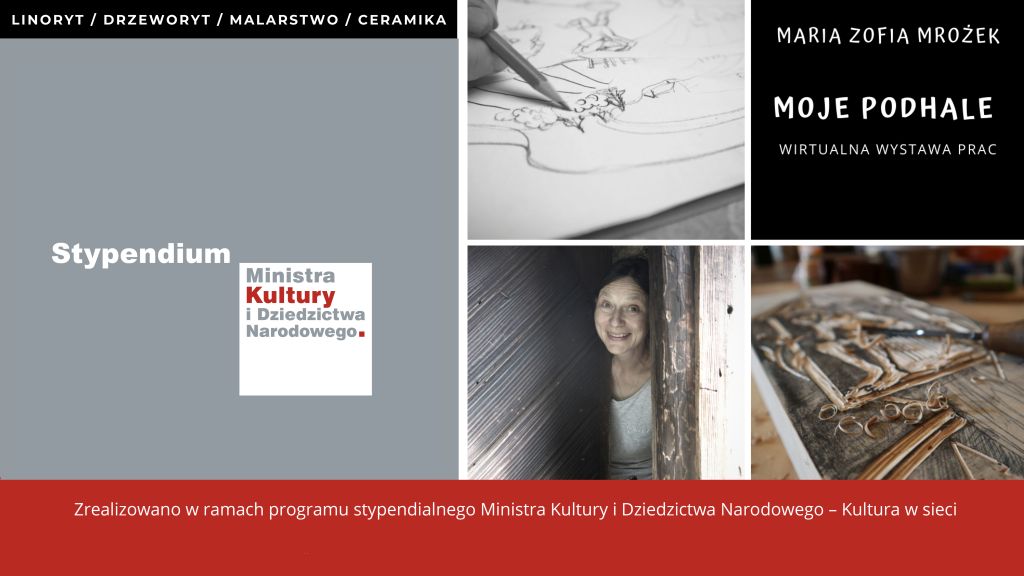 „Moje Podhale - wirtualna wystawa prac” to projekt pierwszej, wirtualnej, autorskiej wystawy prac plastycznych Marii Zofii Mrożek, prezentującej tradycje i obrzędy religijne regionu Podhala. Podziwiać będzie można prace w czterech technikach: drzeworycie, linorycie, technice malarstwa na szkle i ceramice. Publikacja odbywać się będzie w dniach od 15 - 20 września br.