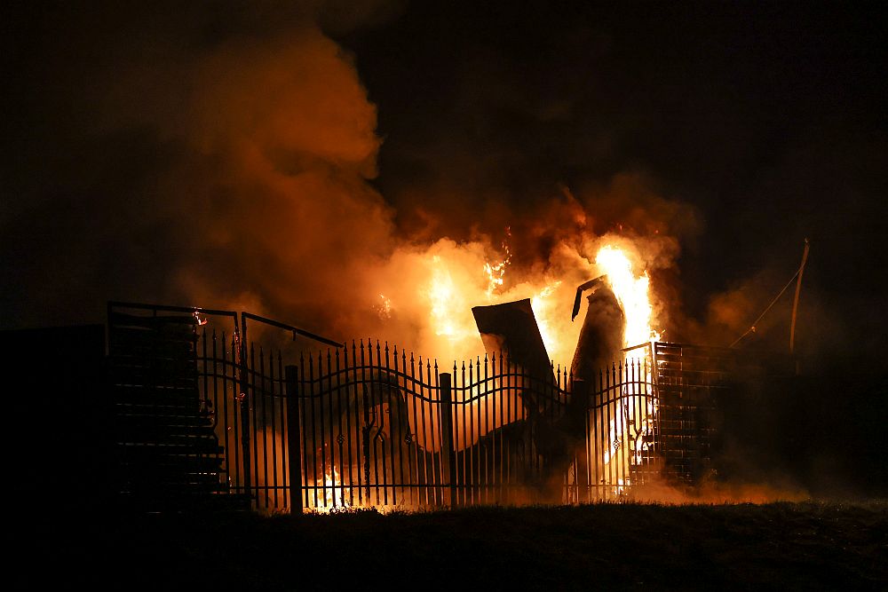 Jak informują strażacy, w pożarze spłonęły trzy samochody - dwa osobowe i dostawczy z mięsem - oraz wiata garażowa. Przyczyna pożaru nie jest znana. Pierwsze przypuszczenia mówią o podpaleniu, ale wyjaśnieniem przyczyn zajmuje się policja. Straty oszacowano wstępnie na kilkaset tysięcy złotych.