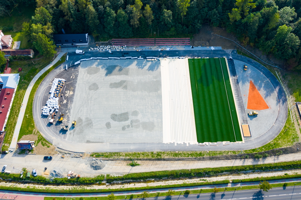 Praca na miejskim stadionie, który przechodzi kompleksową przebudowę, objęły też montaż urządzeń lekkoatletycznych, remont budynku szatniowego i modernizację terenu wokoło. Mają się one zakończyć jeszcze w tym roku.