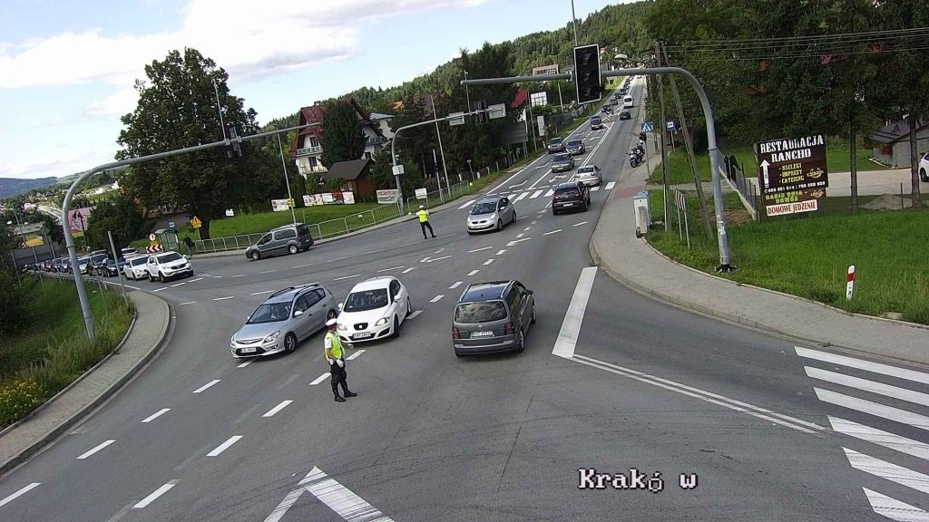 Przejazd między Skomielną a Klikuszową zajmuje kierowcom blisko... cztery godziny. Na skrzyżowaniu w Skomielnej Białej ruchem kierują policjanci.
