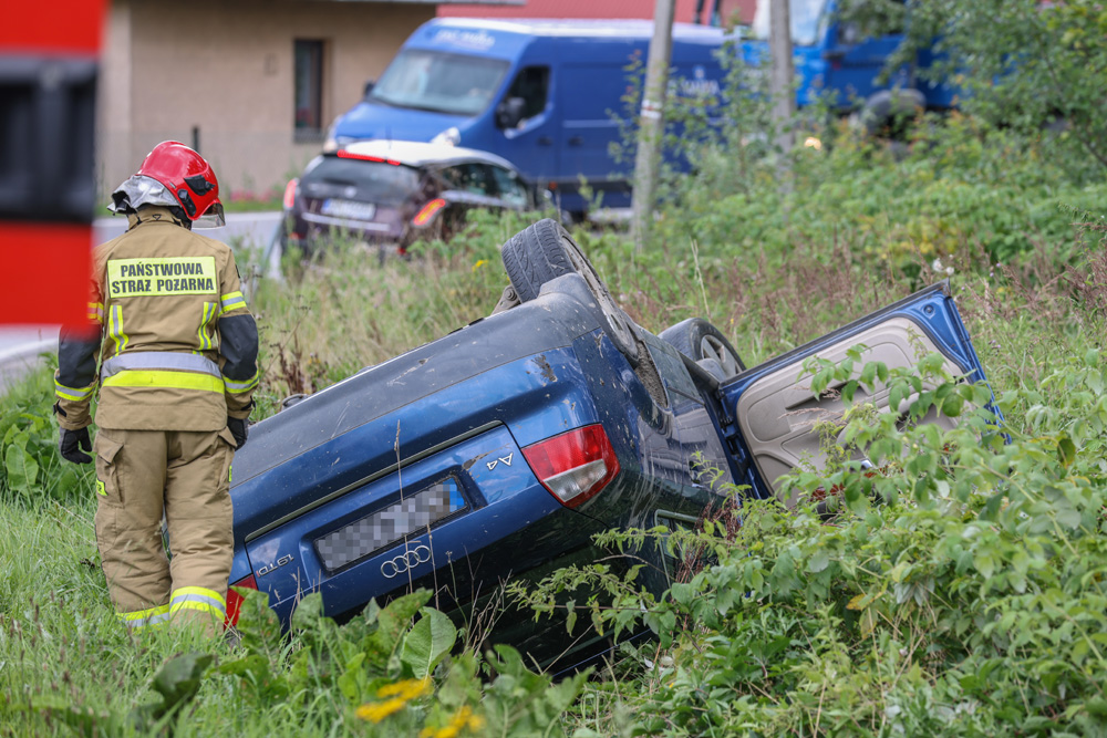 Kierowcy nic poważnego się nie stało. Na miejscu jest policja i straż pożarna.