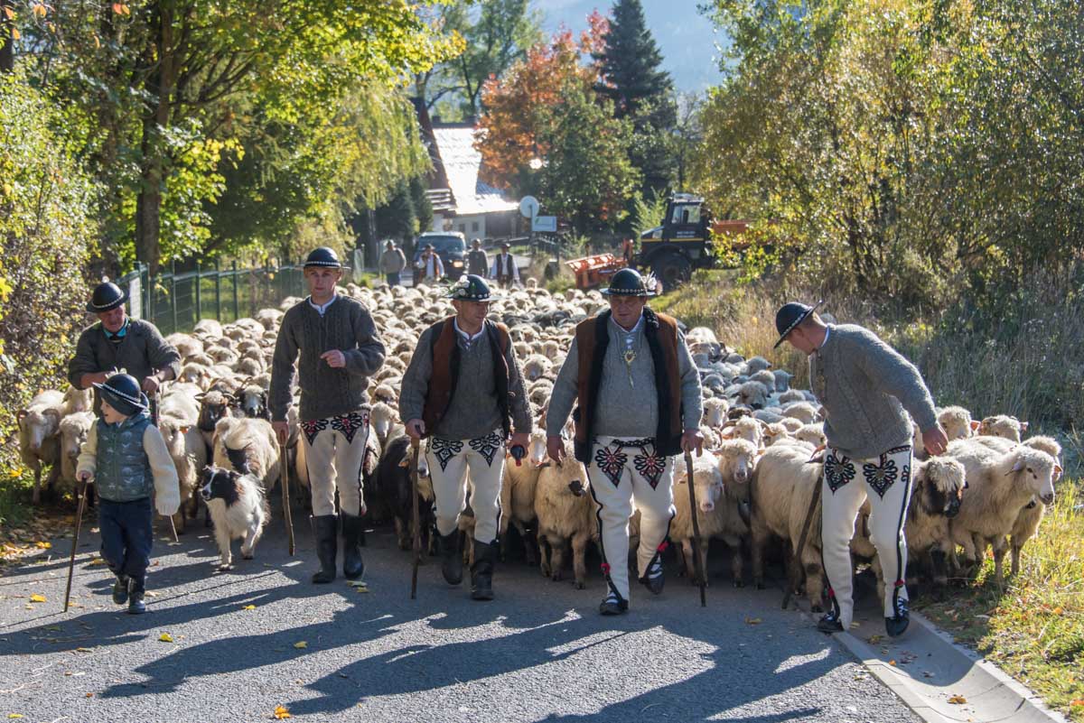 Stado ponad 500 owiec ruszyło ul. Powstańców Śląskich i Czajkami, aby wejść na zbocza Butorowego Wierchu, gdzie owcom pozwolono jeszcze się paść. - Przez tą ich pasterską służbę mamy jeszcze pięknie zachowane polany w pobliżu Gubałówki - zaznacza Gąsienica-Makowski.