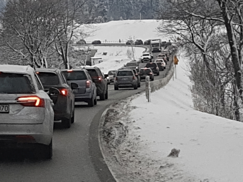 Dziś od rana na zakopiance panował bardzo duży ruch, a w Klikuszowej tworzyły się zatory z obu stron. Sznur samochodów ciągnął się do dwupasmówki w Chabówce, z jednej strony, i do Nowego Targu, z drugiej.