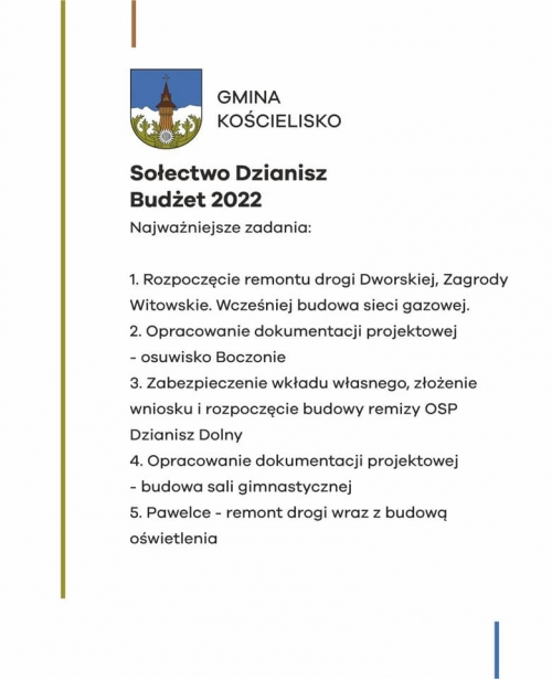 KOŚCIELISKO. "Kończymy 2021 rok. Rok dla naszego samorządu, mimo różnych trudności i problemów satysfakcjonujący. Takie mam przekonanie. Podczas ostatniej sesji Rada Gminy Kościelisko, jednogłośnie przegłosowała uchwałę budżetową na 2022 rok" - informuje wójt Roman Krupa.