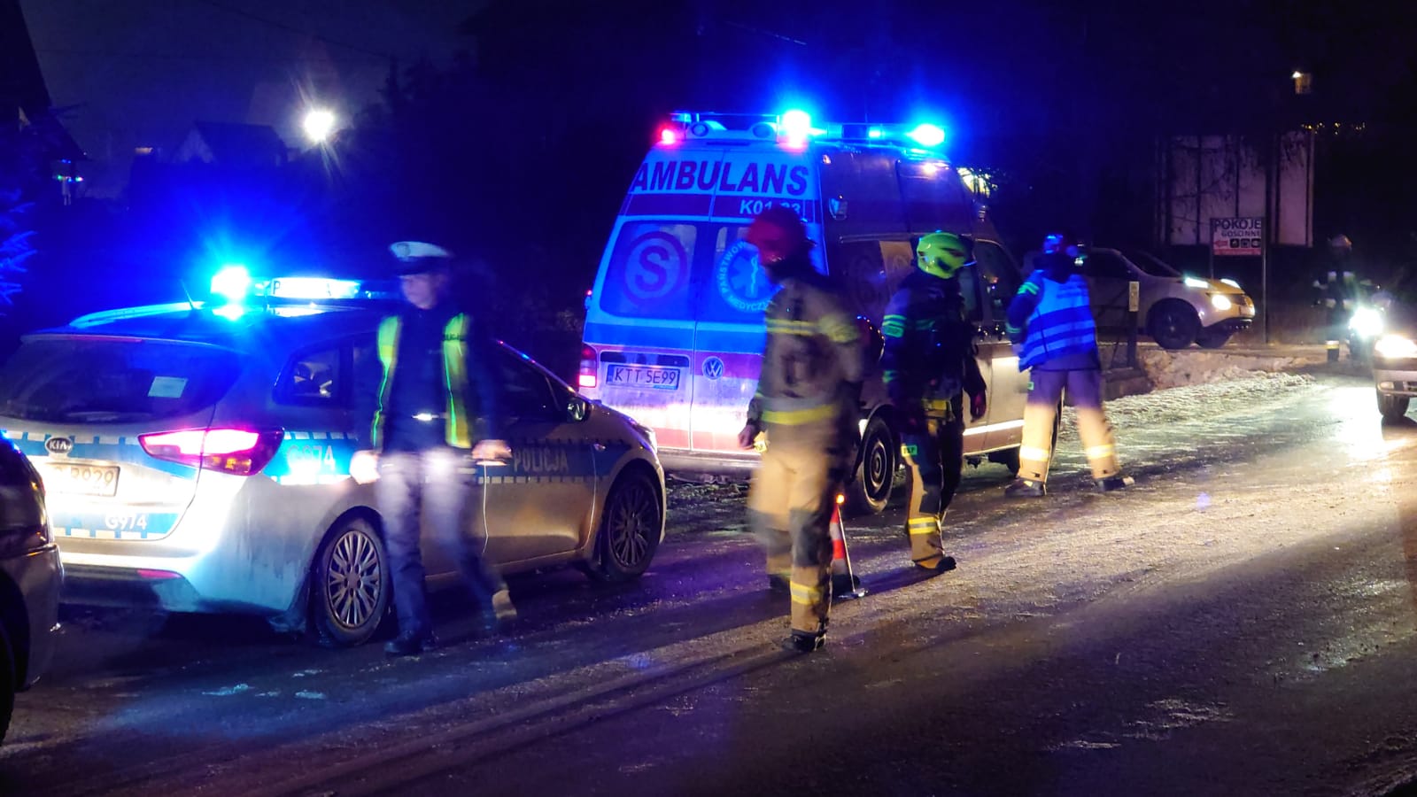 Na miejscu wypadku są służby ratunkowe oraz policja, która ustala przyczyny potrącenia.