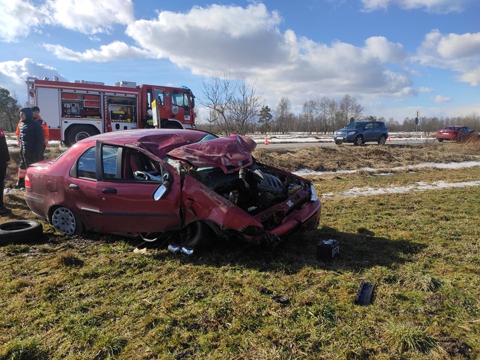 Po wypadku ranna osoba była zakleszczona w środku auta. Dzięki pomocy strażaków udało się ją wydostać. Policja wyjaśnia okoliczności zdarzenia.