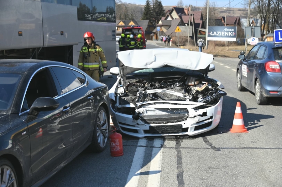Przed godz. 13 w Białym Dunajcu doszło do zderzenia dwóch samochodów osobowych i autobusu. W wypadku poszkodowane zostały trzy osoby.