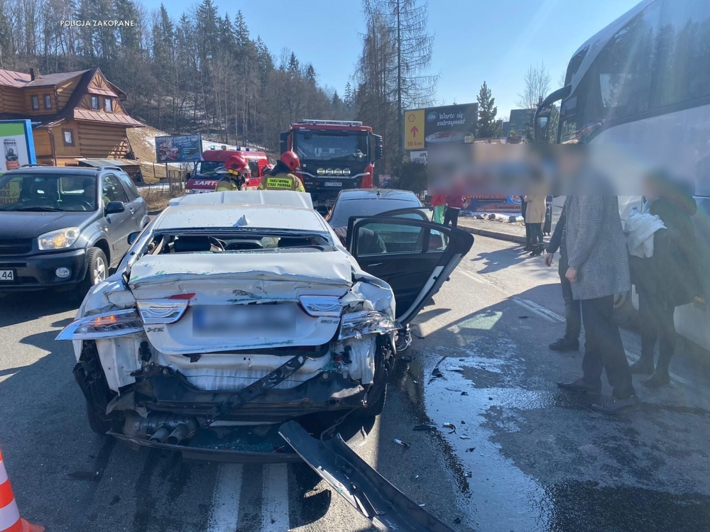 Doszło tam do zderzenia autokaru i dwóch samochodów osobowych. Ze wstępnych ustaleń wynika, że kierowca autobusu najechał na jadący przed nim samochód, a ten uderzył w kolejny. Łącznie pojazdami podróżowały 33 osoby, którym nic poważnego się nie stało. Jak podała po południu zakopiańska policja, kierowca autokaru za spowodowanie kolizji został ukarany mandatem karnym w wysokości 2500 złotych.