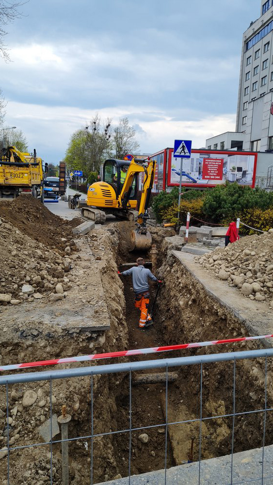 Robotnicy przebudowują podziemną infrastrukturę techniczną. Po zakończeniu tych prac, rozpocznie się budowa wyniesionego skrzyżowania i przebudowa przejść dla pieszych.