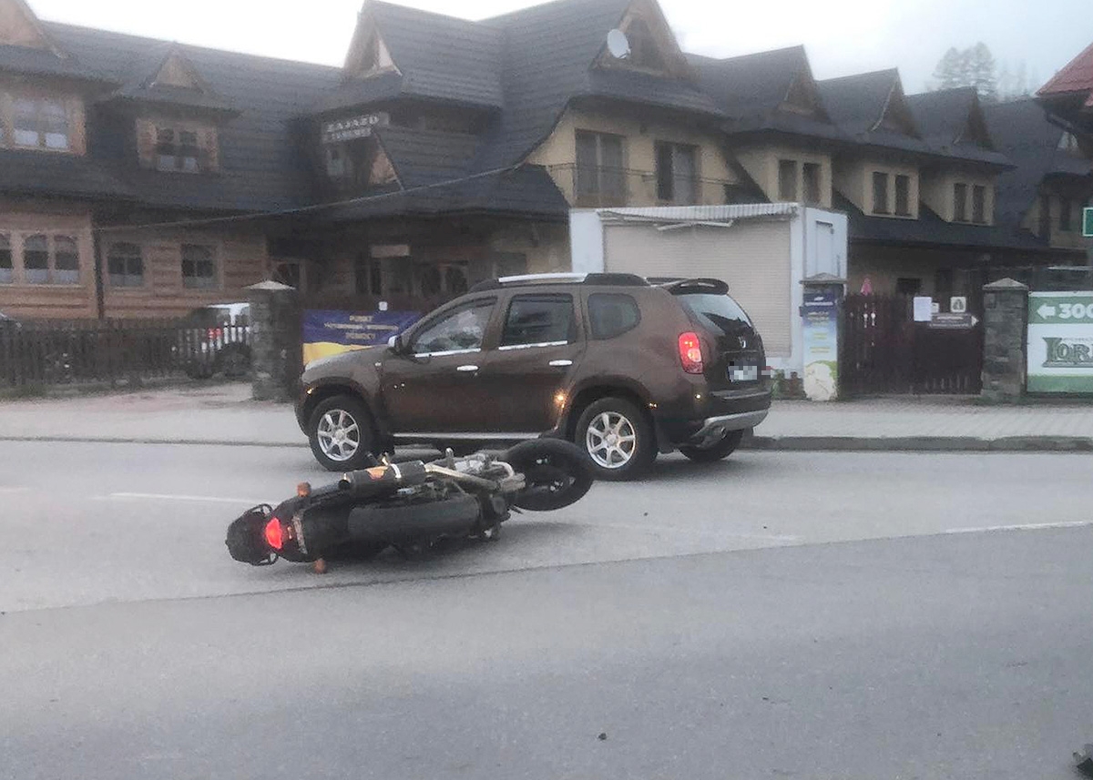 Świadek wypadku, który przesłał nam zdjęcie twierdzi, że w kolizji nikt nie ucierpiał. - Motocyklista wstał i się otrzepał - mówi mieszkaniec Podhala.