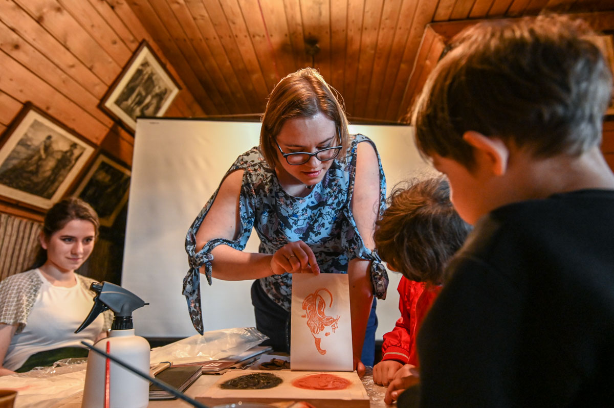 Warsztaty z drzeworytu poprowadziła Magdalena Wanat, nauczycielka z Zespołu Szkół Plastycznych im. Antoniego Kenara w Zakopanem, która zajmuje się grafiką i drzeworytem.