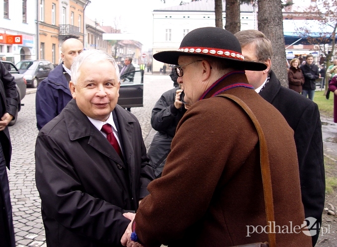 Godz. 14.50: - Lecha Kaczyńskiego chlebem i solą powitali członkowie Związku Podhalan - Alojzy Lichosyt i Janina Bentkowska. Kwiaty wręczyły mu dzieci z zespołu Mali Śwarni. - Tutaj w Nowym Targu byłej nie jeden, nie dwa, trzy, cztery razy - powiedział prezydent do zebranych. - Ale pierwszy raz jestem jako prezydent.