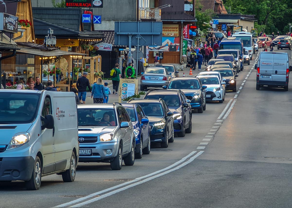 Turyści opanowali Zakopanem. Wszystkie ulice prowadzące do centrum miasta zamieniły się w gigantyczne „parkingi”. Samochody snują się stojąc zderzak w zderzak.