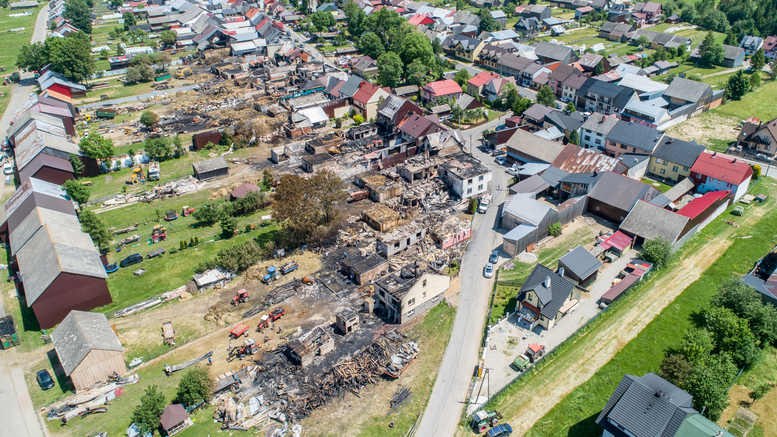 Prokuratura informuje, że ustalono, iż do pożaru mogło dojść z dwóch przyczyn – zaprószenia ognia przez niekontrolowaną migrację iskier z przewodu dymowego jednego z budynków do wnętrza innego budynku gospodarczego, który posiadał ubytki w zadaszeniu, albo wystąpienia niebezpiecznych zjawisk fizycznych zachodzących w instalacji oświetlenia we wnętrzu jeszcze innego budynku gospodarczego, w którym instalacja była prowadzona po drewnianych elementach.