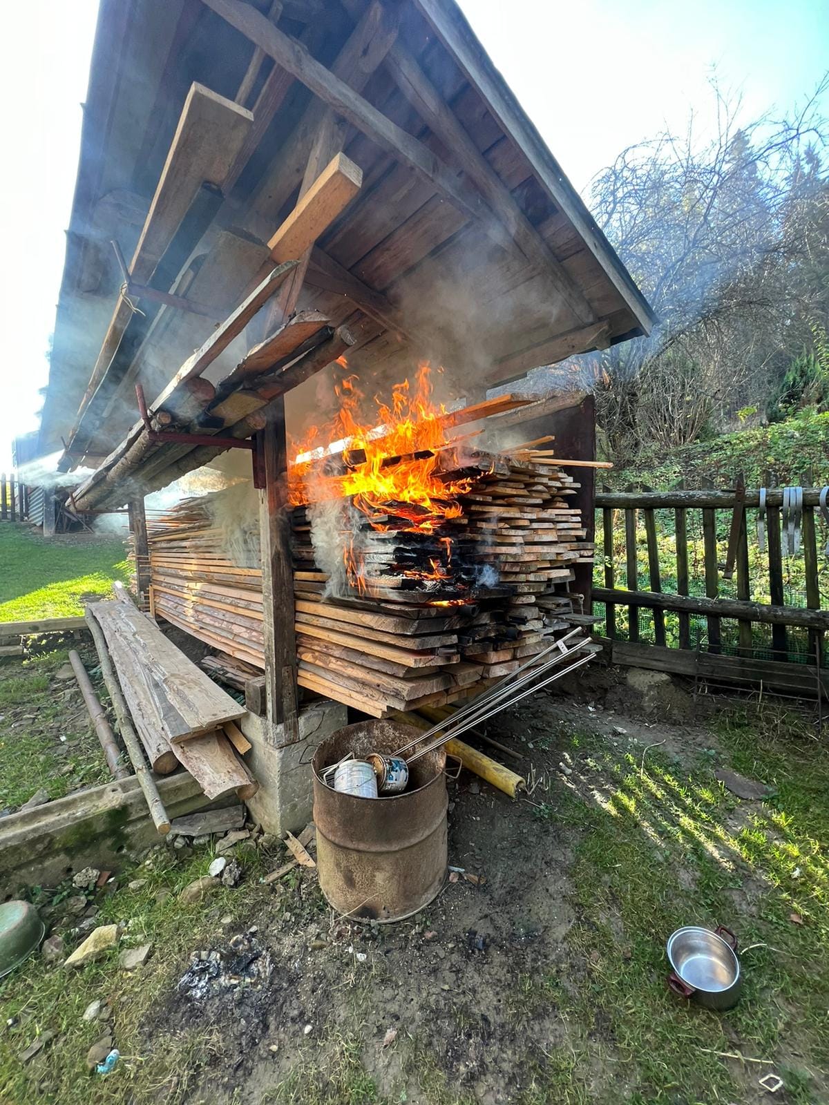 Na pewno stało się nieszczęście- nastąpił cudowny samozapłon i zapaliły się deski sąsiada