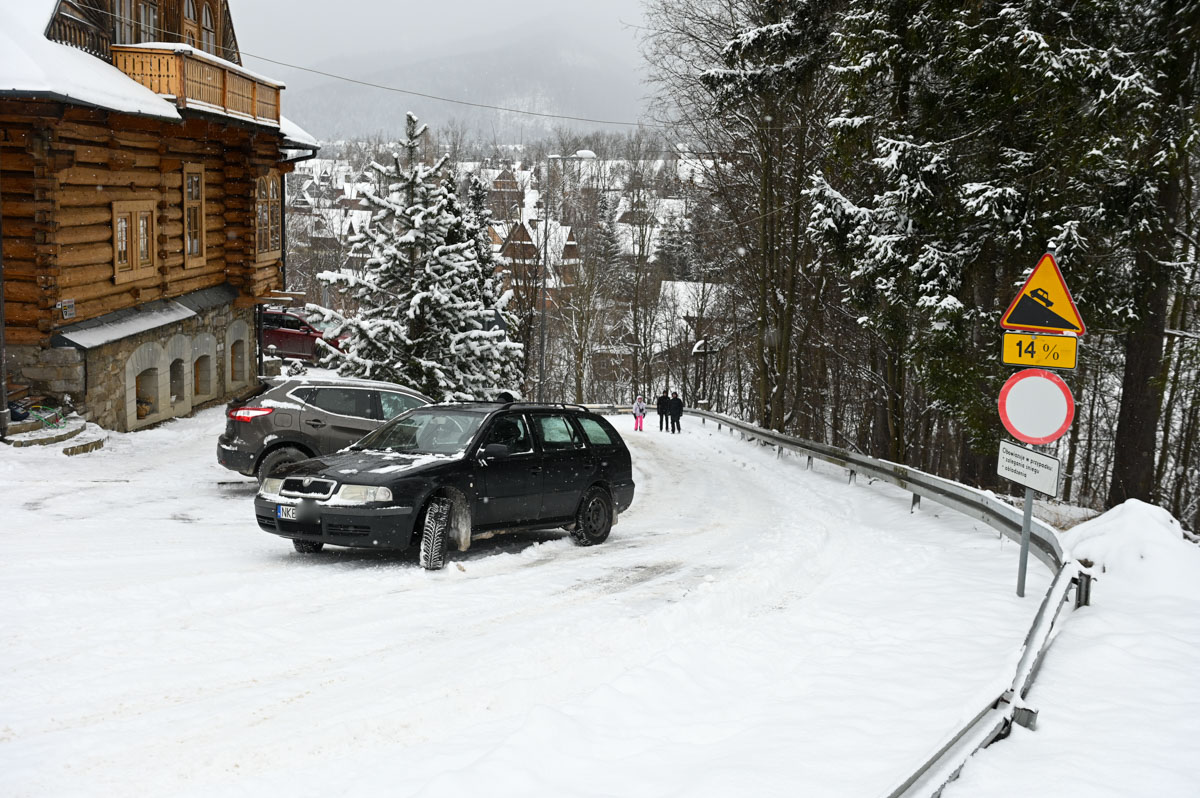 Kierowcy, którzy nie zmienili opon na zimowe i mimo to zdecydowali się przyjechać do Zakopanego mają problemy nawet z najmniejszymi podjazdami. Nie pomaga im nawet napęd na cztery koła.