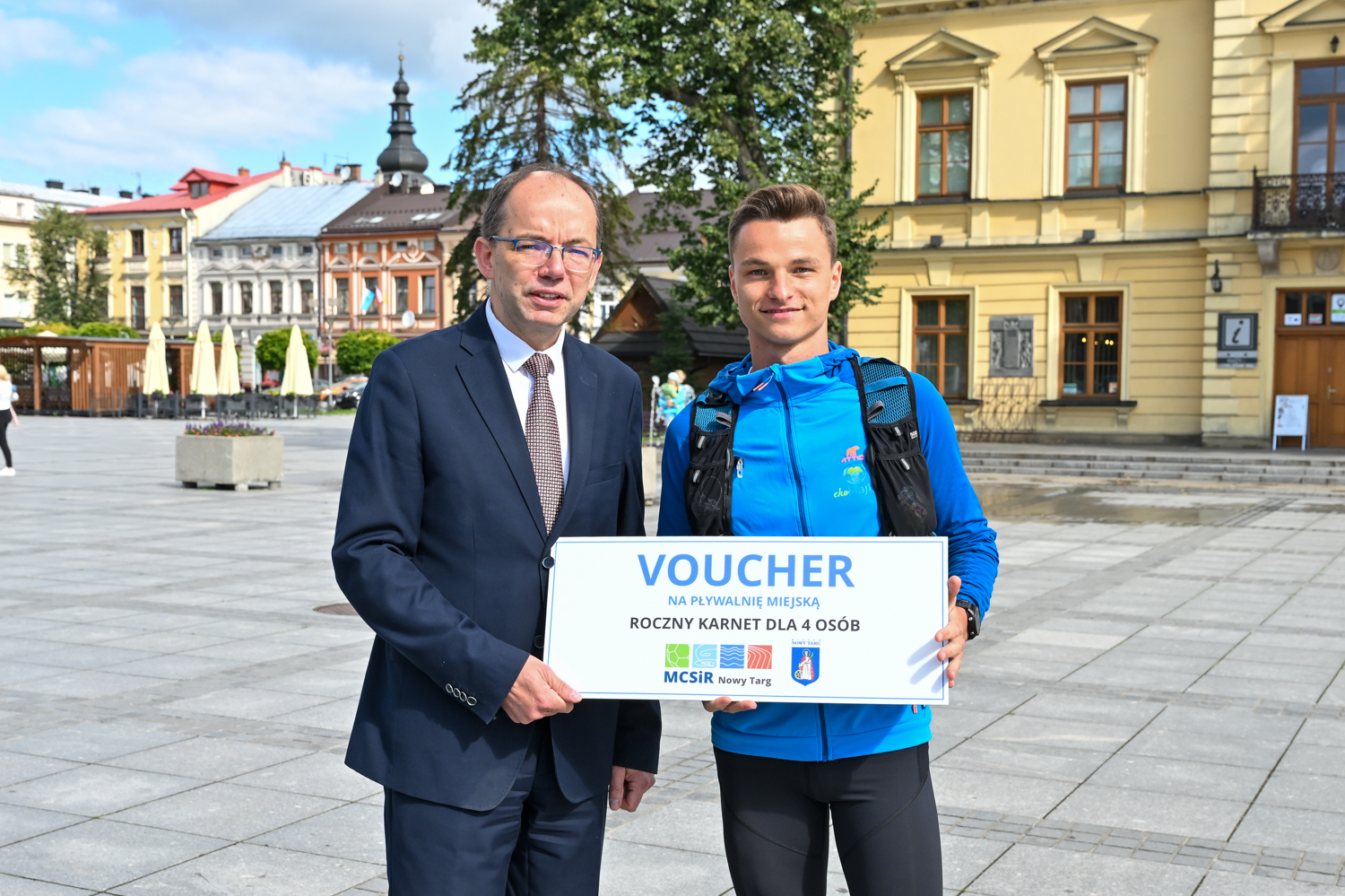 Dziś na nowotarskim Rynku burmistrz Grzegorz Watycha podziękował mu za wielką determinację w bezinteresownej pomocy. Na ten szczyty cel burmistrz przekazał do licytacji roczny karnet wejść dla 4 osób na Pływalnie Miejską w Nowym Targu (licytacja: fb.com/mateusz.cyrwus.3)