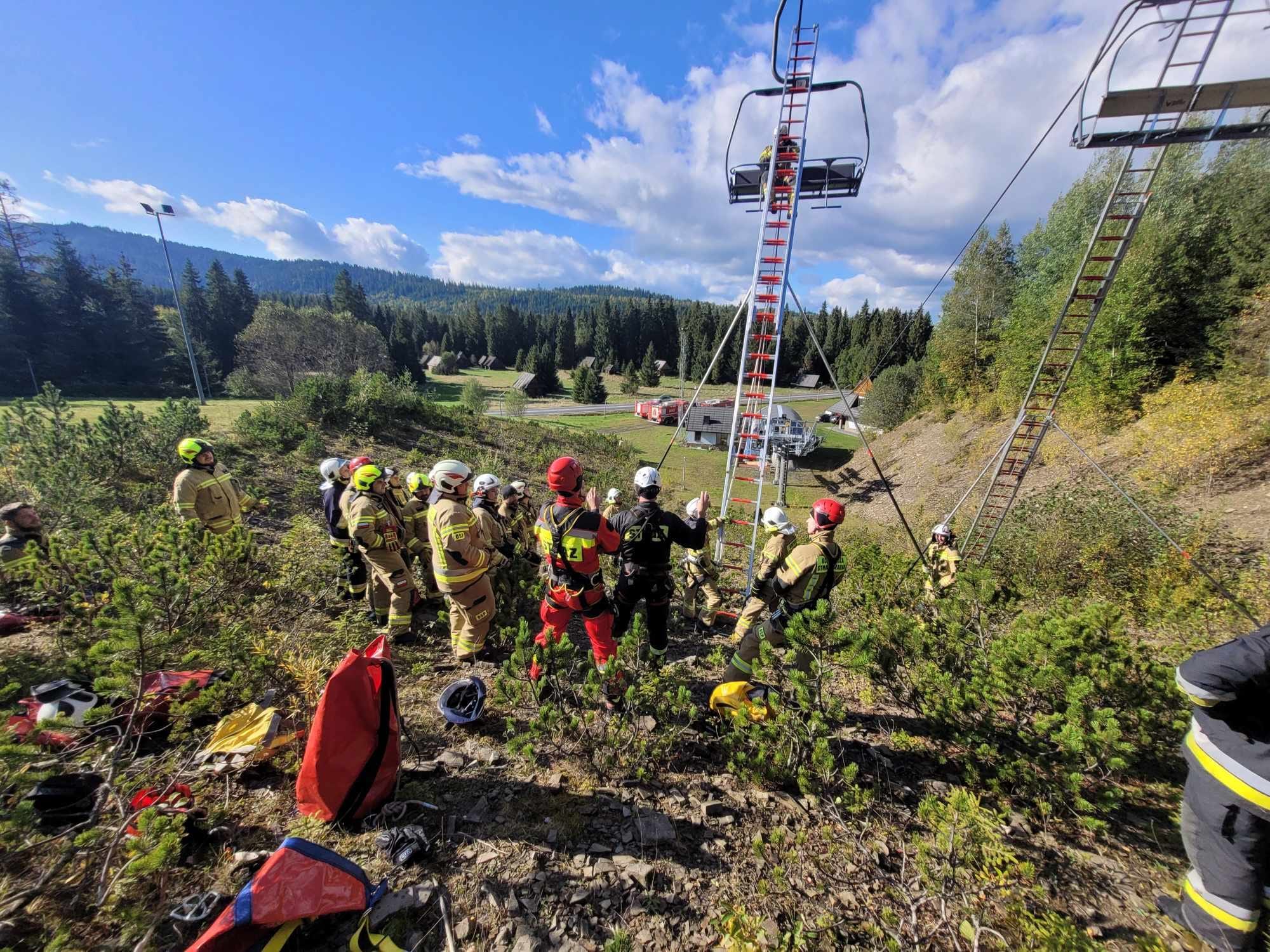 Były to ćwiczenia z ewakuacji z kolei linowych za pomocą drabin.