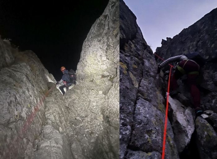 "Ratownicy HZS z dwiema kobietami i jednym mężczyzną, dla zabezpieczenia na krótkiej linie, wspięli się na Zadni Gerlach i zaczęli schodzić do doliny Velickiej. W trakcie trwającej akcji ratunkowej, już po zmroku, z linią alarmową skontaktowało się dwóch wspinaczy - mężczyzna i kobieta, którzy samodzielnie schodzili do doliny. Podczas zejścia doszli do progu skalnego, z którego nie byli w stanie zejść" - relacjonują ratownicy HZS.