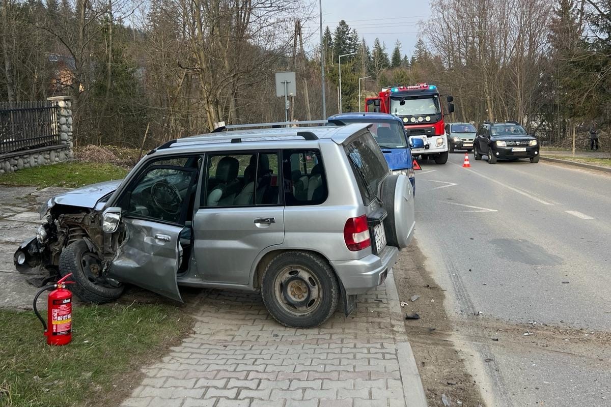 W Kościelisku na ul. Nędzy Kubińca w piątek 22 marca doszło do groźnie wyglądającego zderzenia dwóch pojazdów. Jak ustaliła zakopiańska policja do wypadku doszło na skutek zjechania na sąsiedni pas ruchu. - 77-letnia kierująca pojazdem m-ki Mitsubishi podczas wymijania się z innym pojazdem zjechała nagle na przeciwległy pas ruchu i uderzyła w prawidłowo poruszający się z przeciwka dostawczaka marki Iveco - informuje asp. sztab. Roman Wieczorek, rzecznik prasowy Komendy Powiatowej Policji w Zakopanem.