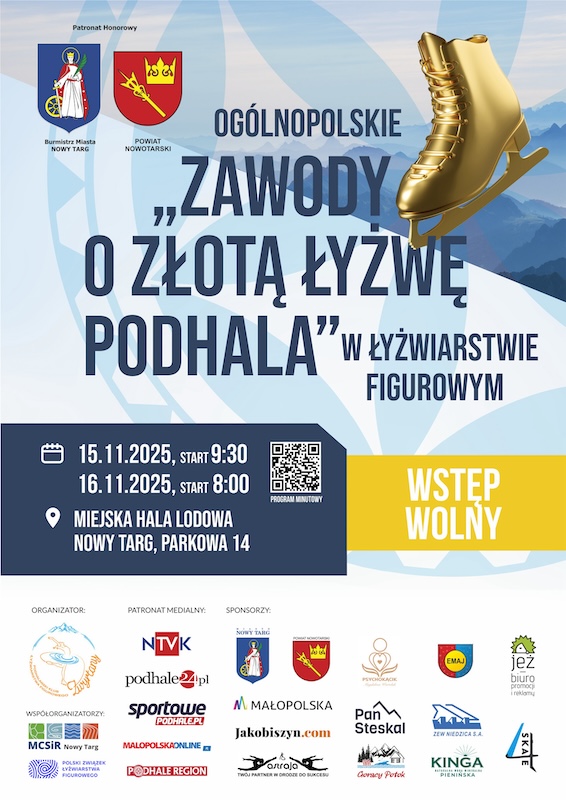W dniach 15 i 16 listapda na nowotarskim lodowisku odbędą się ogólnopolskie zawody w łyżwiarstwie figurowym organizowane przez klub Zwyrtany.