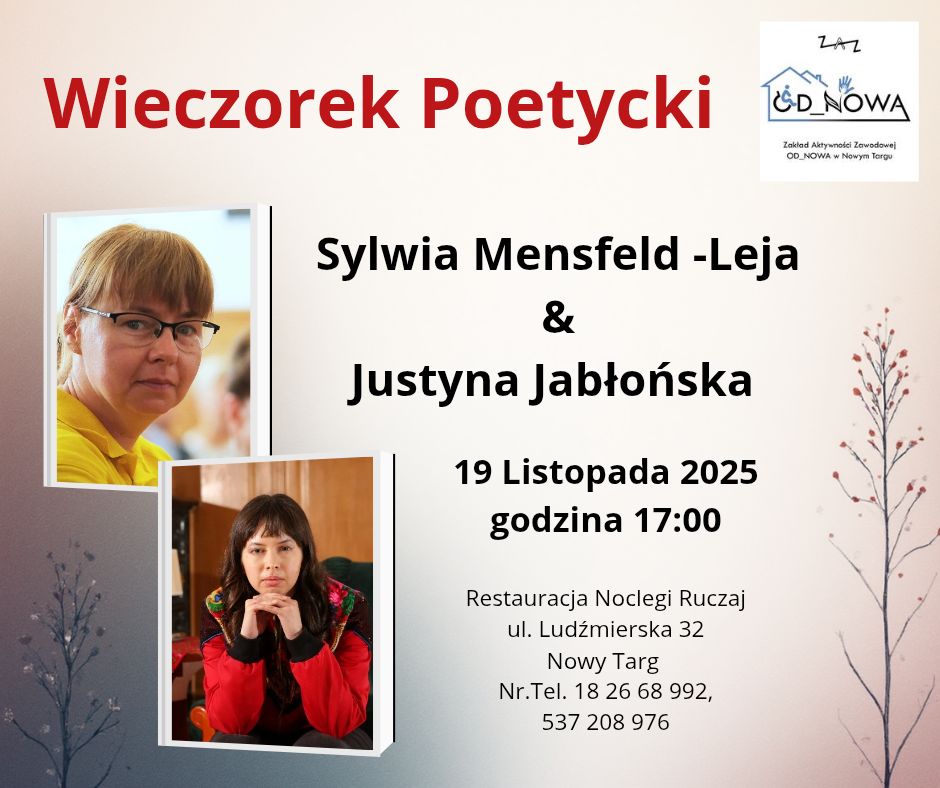 W magicznej atmosferze Restauracji Noclegi Ruczaj swoje wiersze zaprezentują: