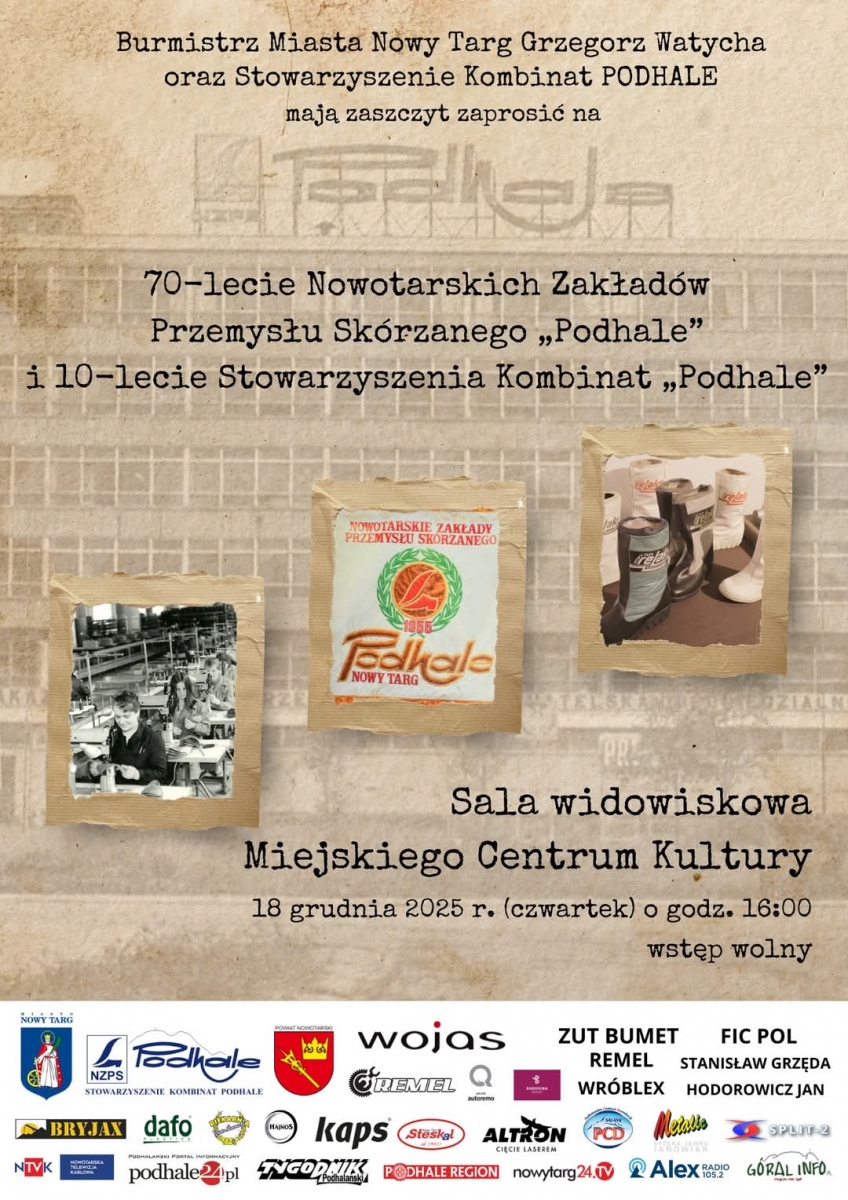 Miasto Nowy Targ serdecznie zaprasza mieszkańców, byłych pracowników oraz wszystkich zainteresowanych historią naszego miasta do udziału w uroczystości.