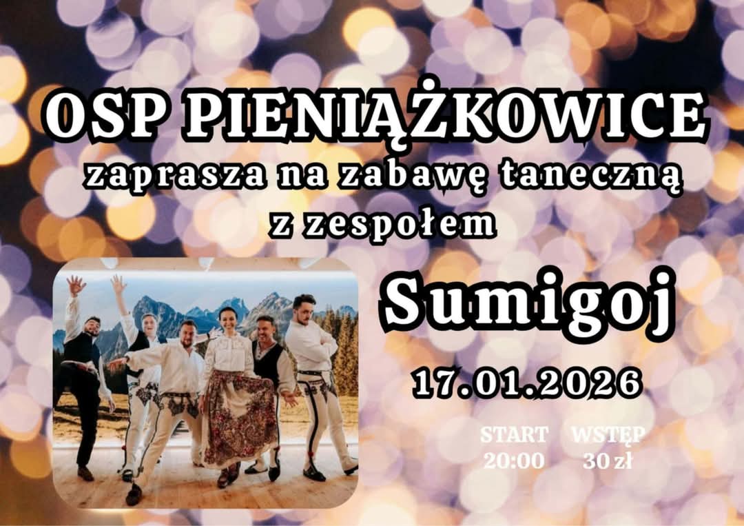 OSP Pieniążkowice zaprasza w sobotę 17 stycznia 2026 na zabawę taneczną z zespołem SUMIGOJ