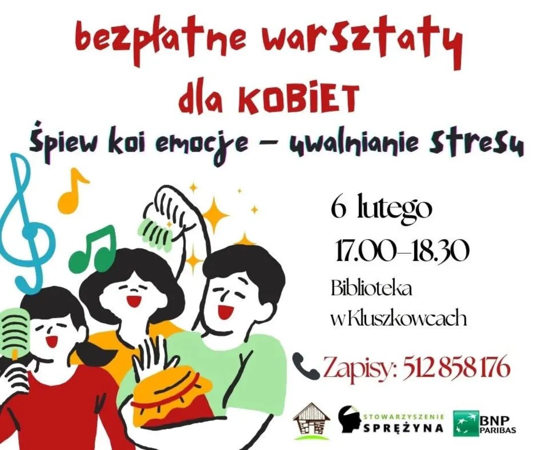 Zapraszamy kobiety, które chcą zadbać o siebie, uwolnić napięcie, pośmiać się i po prostu dobrze spędzić czas, na bezpłatne warsztaty ze śpiewu.