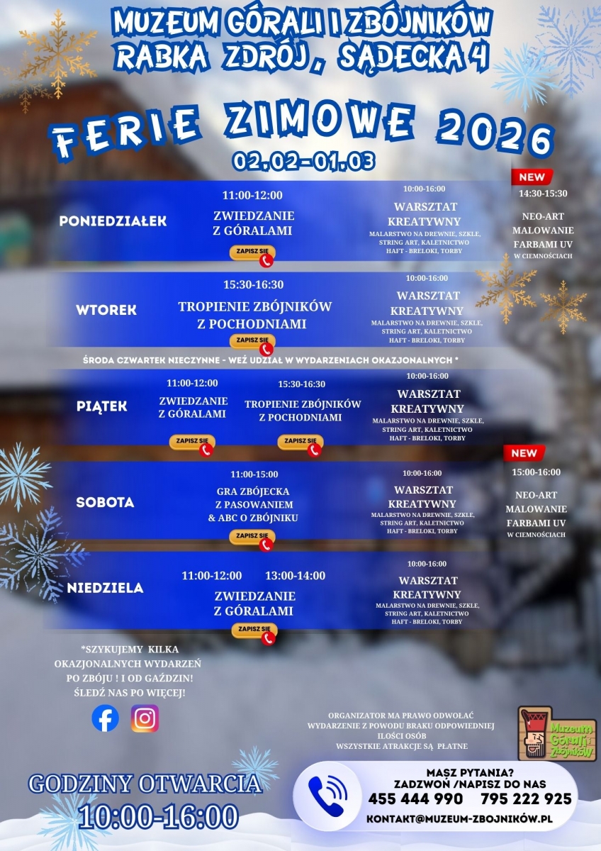 Od 2 lutego do 1 marca Muzeum Górali i Zbójników w Rabce zaprasza na ferie zimowe