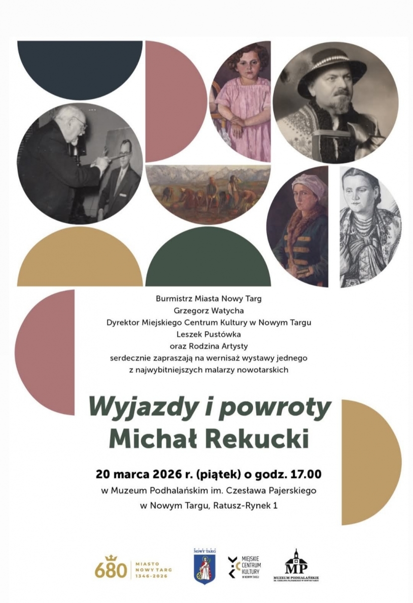 Burmistrz Miasta Nowy Targ Grzegorz Watycha, Dyrektor Miejskiego Centrum Kultury w Nowym Targu Leszek Pustówka oraz Rodzina Artysty serdecznie zapraszają na wernisaż wystawy jednego z najwybitniejszych malarzy nowotarskich