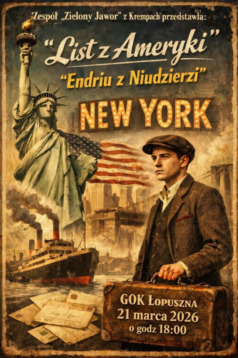 Gminny Ośrodek Kultury w Łopusznej zaprasza na spektakl w wykonaniu zespołu "Zielony Jawor" z Krempach