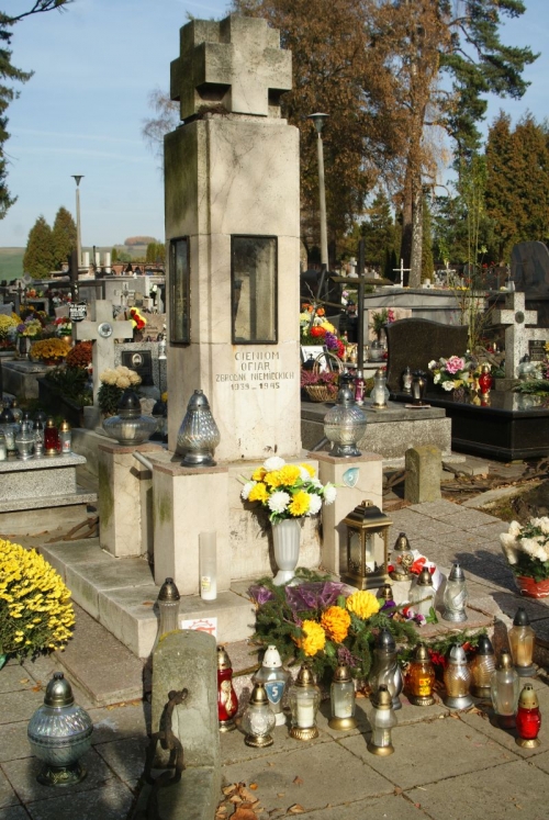 Mogiła zbiorowa z wieńczącym ją obeliskiem znajduje się w kwaterze nr 29.