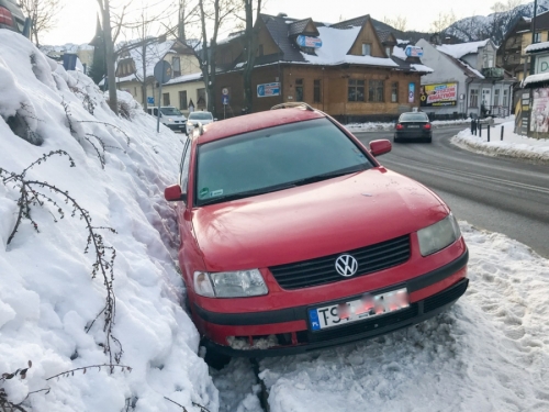 ZAKOPANE. Od czasu nocy sylwestrowej przy ulicy Jagielońskiej na chodniku stoi samochód.