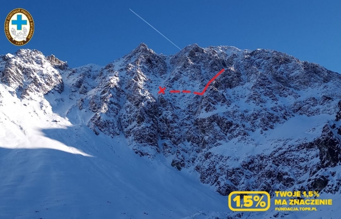 TATRY. Ok. godz. 16-tej ratownicy TOPR przyjęli zgłoszenie o snowboardziście, który znalazł się w eksponowanym terenie w masywie Granatów i nie potrafi bezpiecznie zjechać w dół.