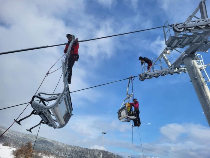 Ratownicy Grupy Podhalańskiej GOPR ćwiczyli przez weekend ewakuacje pasażerów z kolei krzesełkowej w ośrodku narciarskim Czorsztyn-ski Kluszkowce.