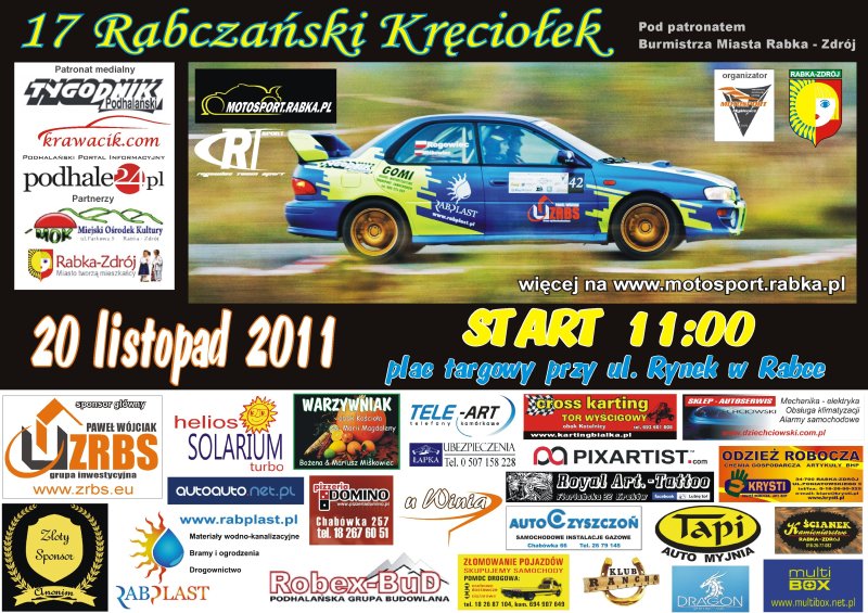 Rajdowcy startować będą w siedmiu klasach, przewidziano też start kobiet. Trasa wiodła będzie na asfalcie i powierzchni szutrowej przez około jeden kilometr. Zawodnicy pokonają ją trzykrotnie. Na zwycięzców czekają puchary i nagrody rzeczowe. Początek imprezy - godz. 11. Więcej informacji na stronie www.motosport.rabka.pl.
