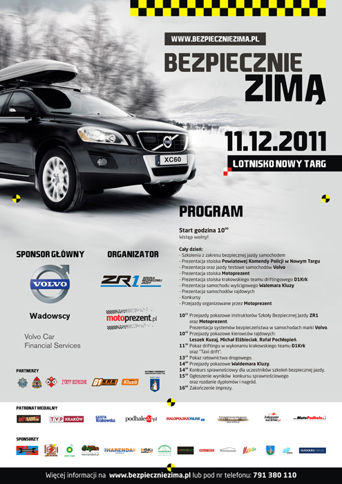 Organizatorzy akcji: Szkoła Bezpiecznej Jazdy ZR1 i Motoprezent.pl. Partnerzy: Komenda Powiatowa Policji w Nowym Targu, Aeroklub Nowy Targ, Komenda Powiatowa Państwowej Straży Pożarnej w Nowym Targu, D1krk – Krakowski Team Driftingowy oraz www.żyjemy-bezpiecznie.pl i www.waldekkluza.p. Patronat Honorowy Burmistrza Miasta Nowy Targ.