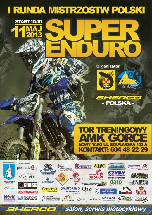 Organizatorem zawodów jest AMK „GORCE” Nowy Targ – SHERCO Polska. Zawody SuperEnduro odbędą się przy Torze Trialowym (ul. Szaflarska 103A za siedzibą AMK”GORCE” Nowy Targ za McDonald’s.)