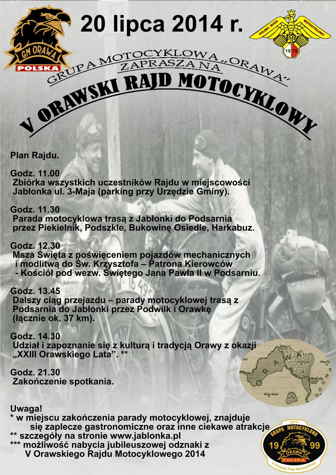 O godz. 11:00 spotkanie przy Urzędzie Gminy w Jabłonce. Rajd odbędzie się bez względu na pogodę.