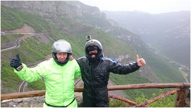 Cały czas leje. Podjazd serpentynami na ok.1700m u góry pamiątkowe zdjęcia i teraz kierunek Theth .Asfalt znowu się kończy i zaczyna się zabawa. Piękny zjazd po błocie i szutrach różnego rodzaju .W połowie zjazdu Yamaha traci tylny hamulec. Okazało się ,że odkręciła się śruba od przewodu hamulcowego i uciekł płyn. Z tym sobie też poradziliśmy i pomknęliśmy dalej.Na dole naszej radości nie ma końca. Ale nie wiedzieliśmy, że najlepsze jeszcze przed nami.