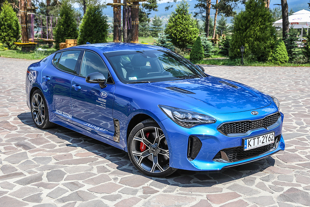 Model, który dzięki uprzejmości firmy Wadowski - dealera KIA w Nowym Targu i Zakopanem mieliśmy okazje testować to topowa wersja GT wyposażona w silnik o pojemności 3,3 litra i mocy 370 KM. Bardzo efektowny niebieski kolor w połączeniu z nietuzinkowym designem sprawia, że nikt nie pozostaje na drodze obojętny na taki widok, a dzięki napędowi przenoszonemu na wszystkie koła w trasie samochód sprawia kierowcy dużo przyjemności. Jak przystało na model którym Koreańczycy chcą otworzyć sobie drogę do klasy zdominowanej dotąd przez Niemców samochód oferuje wszystko to, co auto tej klasy powinno oferować. Znajdziemy tu więc wszystkie systemy bezpieczeństwa, nawigacje, klimatyzację i wysokiej jakości system audio. Bagażnik nie jest imponująco duży, mimo że samochód jest większy niż na przykład Audi A5, ale zupełnie wystarczający dla tego typu pojazdu. Najmocniejsza wersja jest niestety dość paliwożerna, ale z drugiej strony stado 370 koni wymaga karmienia. Na szczęście dla oszczędnych KIA oferuje także dwa skromniejsze silniki w tym samochodzie - benzynowy z turbiną o pojemności 2 litrów dane moc 255 koni, lub turbo diesel o pojemności 2,2 litra i generujący 200 koni mechanicznych.