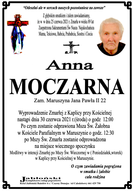Anna Moczarna - Nekrologi - podhale24.pl