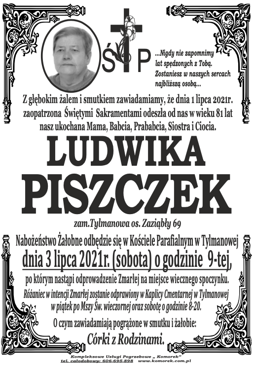 Ludwika Piszczek - Nekrologi - podhale24.pl
