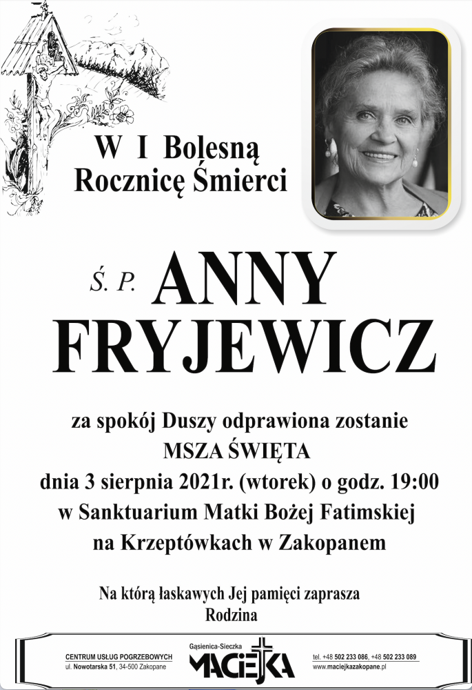 Anna Fryjewicz - Nekrologi - podhale24.pl