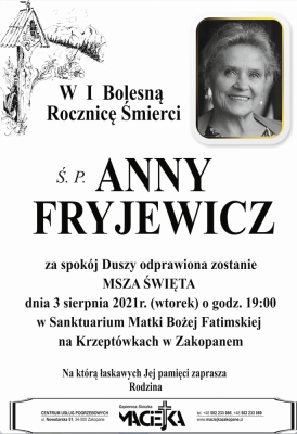 Podhale24.pl zastrzega sobie prawo do nie publikowania wspomnień, w szczególności tych nie związanych z profilem działu nekrologi, zawierających wulgaryzmy, wzywających do zachowań niezgodnych z prawem, obrażających osoby publiczne i prywatne, obrażających inne narodowości, rasy, religie itd, oraz te, bez możliwości telefonicznej lub mailowej weryfikacji ich autora.