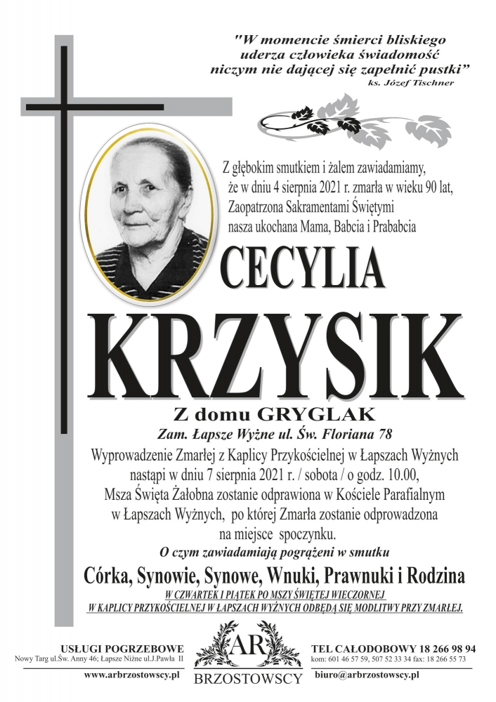 Cecylia Krzysik - Nekrologi - podhale24.pl