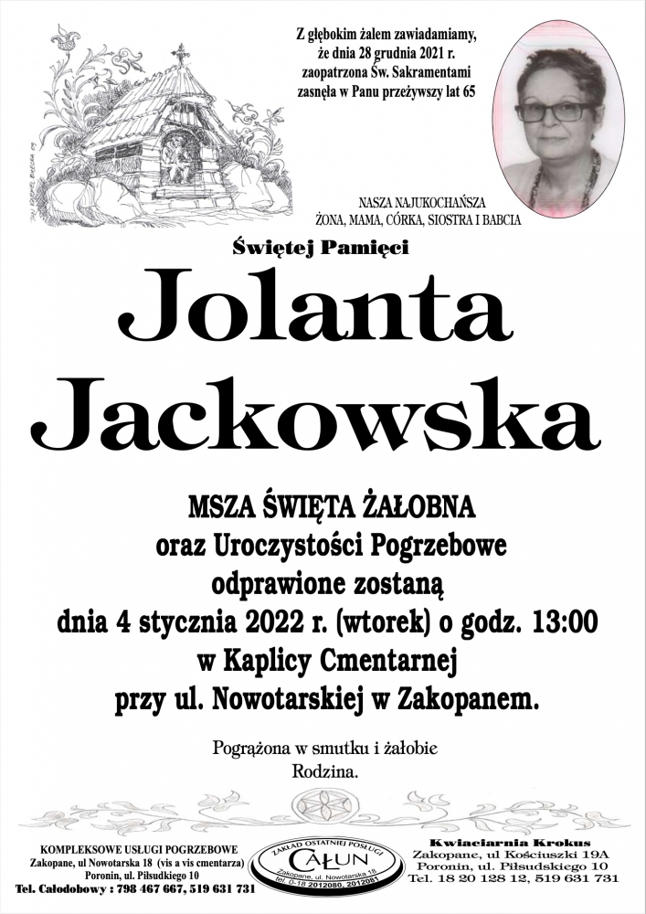 Jolanta Jackowska - Nekrologi - podhale24.pl