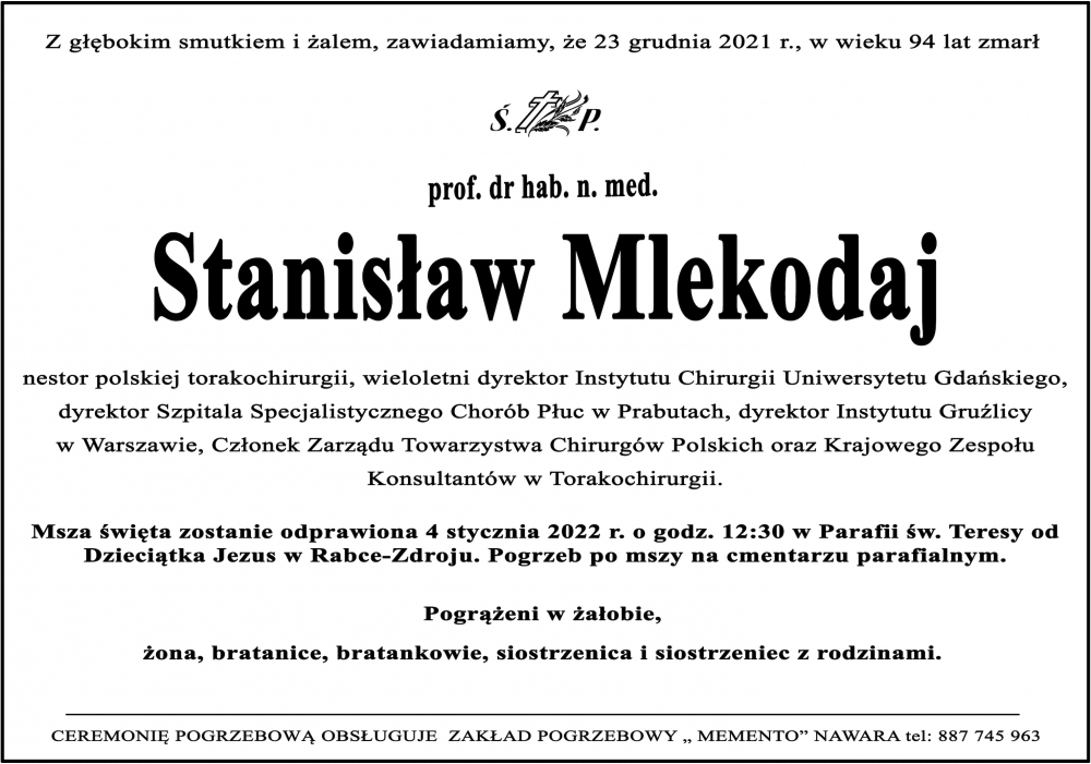 Stanisław Mlekodaj - Nekrologi - podhale24.pl
